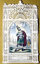 Là aussi, dans la collection d'images pieuses exposées sous verre contre un des murs, vous trouverez notre saint Victor, représenté ici sur un magnifique canivet, bien que cette fois-ci sans petit moulin. Mais l'image met en scène l'épisode qui, d'après les récits de son martyre, précède tout juste son supplice entre les meules. Un ange de Dieu lui apparaît, la palme des martyrs déjà à la main, pour l'encourager à vaincre toutes ces épreuves et ces tortures et mériter par là vraiment son prénom de Victor (le martyre victorieux).